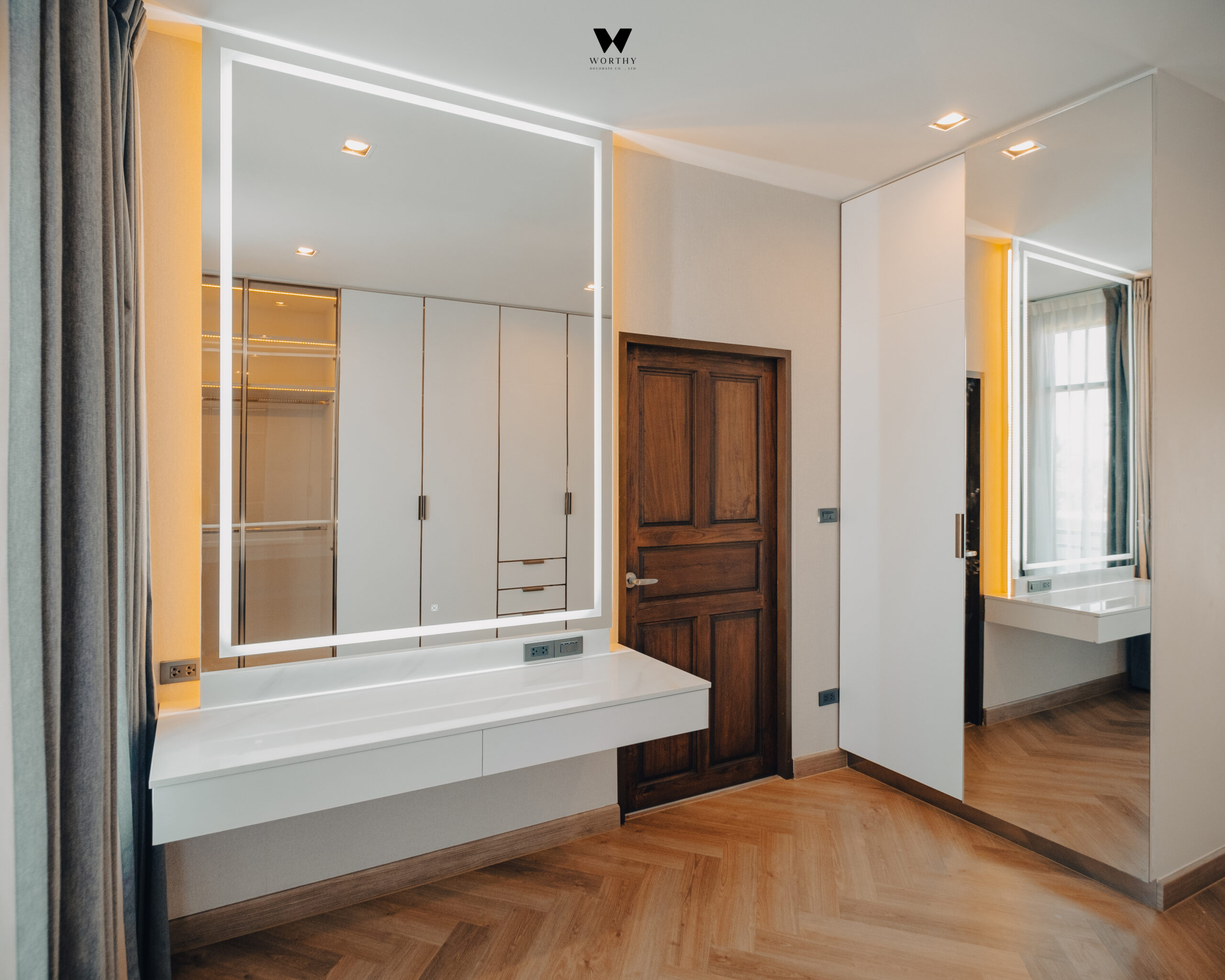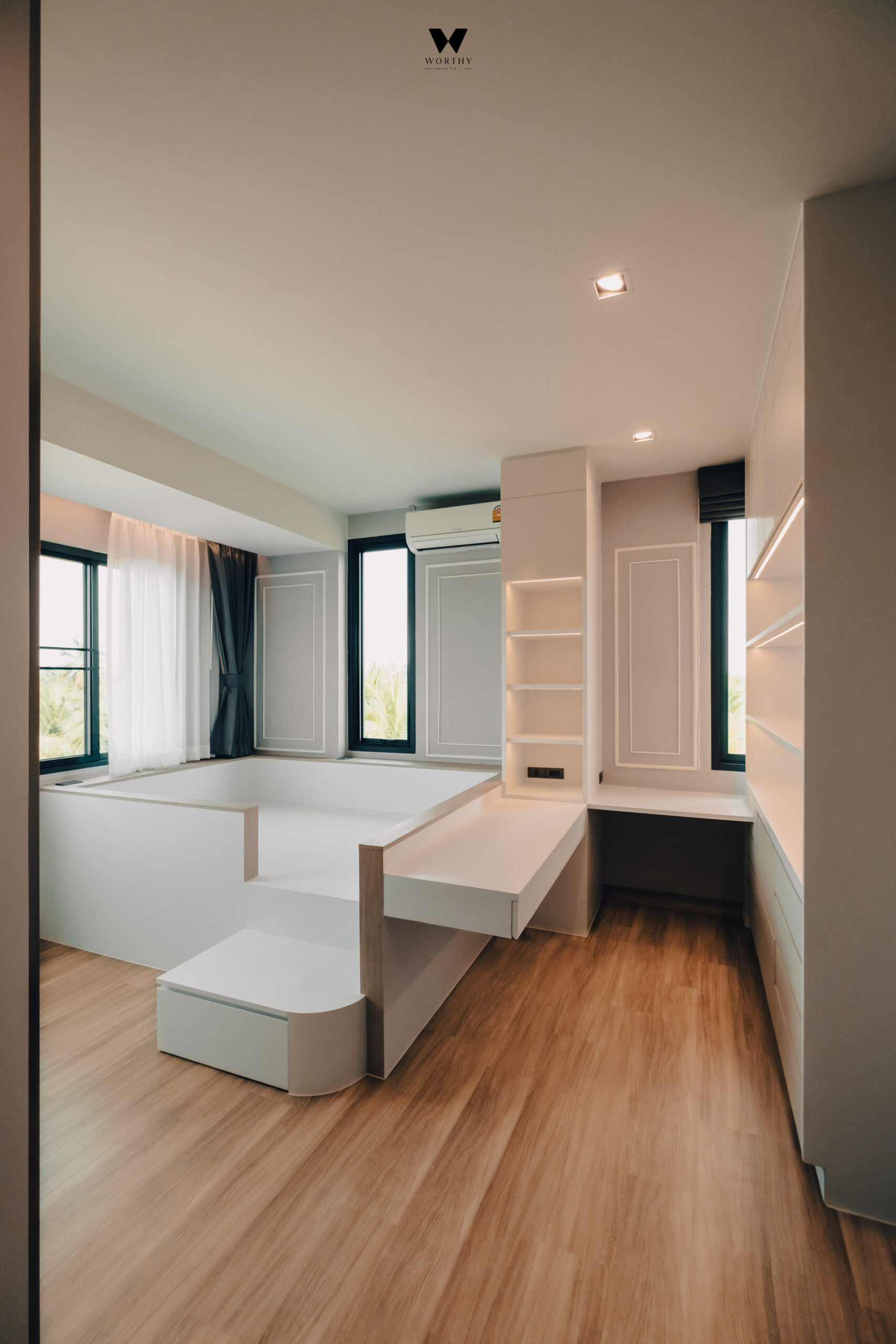 ผลงานออกแบบและตกแต่งภายในบ้านเดี่ยวสร้างเอง บ้านหลังนี้เราได้ตกแต่งในสไตล์ "Modern" ผสมผสานความมินิมอล มูจิ และสแกนดิเนเวียน จะเห็นได้ว่ามุมทุกมุมของบ้านจะนี้ถูกตกแต่งให้โทนสีเป็นสีที่สว่างดูเรียบง่าย อบอุ่น และสบายตา